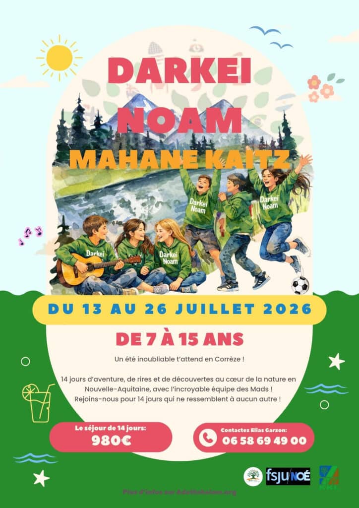 Le projet est finalisé et nous avons le plaisir de vous annoncer que les inscriptions sont désormais ouvertes pour le Mahane Kaitz, du 13 au 26 juillet 2026.